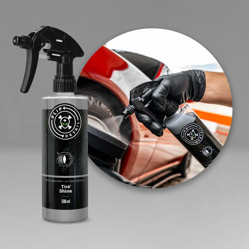 Devuélvele a tus ruedas el aspecto de fábrica con el Recuperador de Neumáticos de Flip Detail. Su fórmula crea un acabado gloss de larga duración, potencia el color negro y protege la goma ante el polvo, la suciedad y las grietas. Además, es 100 % eco-friendly, sin solventes agresivos ni siliconas, y apto para coches y motos.